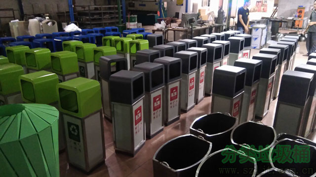 這批垃圾桶是供商場及其附近的商業(yè)街適用,適用鋼板材料,外表烤漆成綠黃紅藍四色,分別代表廚余垃圾,其他垃圾,有害垃圾,可回收垃圾,分類明確詳細,有利于人們垃圾分類減量。由于采用鋼板烤漆材料,所以垃圾桶防水防曬防腐蝕,再加上其本身的外觀設(shè)計大方典雅,所以室內(nèi)戶外都能夠適用。