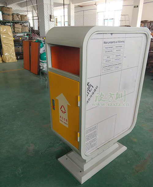 ? 整體式廣告垃圾桶,例如欣方圳的J24廣告垃圾桶(雙面)則在加工的時候整體成型,一般正反兩面預留廣告位,側面開口作為垃圾桶投入口,垃圾桶內膽直接放在箱內。清運時用專用鑰匙打開鎖,從側面預留的清運門取出內桶清理垃圾。生產時,使用鍍鋅鋼板或者不銹鋼加工框架,關鍵轉角部位加以角鋼加固,防止變形,然后進行表面打磨拋光,鋼板烤漆噴塑。整體結構牢靠,箱體箱底連體式設計,底座可固定地上,抗打擊,抗風力。廣告垃圾桶燈箱具有、投入成本低,直接受眾效果好。相比較其他形式的廣告而言垃圾桶廣告的成本相當低而且是直接面向廣告受眾,貼進消費者,形成高覆蓋網絡規模廣告效應。