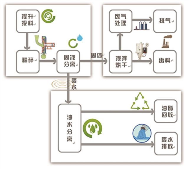 “我們學(xué)校丁蘭校區(qū)一共有師生1800余人,早中晚三餐,每天餐廚垃圾量非常大。”他說,2016年學(xué)校引進(jìn)了一套設(shè)備,還專門為它建了一個(gè)垃圾房,裝了一個(gè)通道連接樓上的食堂餐廳。設(shè)備集粉碎脫水機(jī)、干燥處理系統(tǒng)、油水分離器、除臭系統(tǒng)以及投料裝置、物料輸送裝置于一體,直接源頭就地快速處理每天的餐廚有機(jī)垃圾,杜絕二次污染,做到資源回收綜合利用。