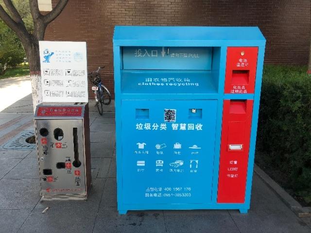 燕依園社區(qū)是銀川市生活垃圾分類示范區(qū)之一,所轄兩個小區(qū)常住人口超八千人。記者走訪看到,小區(qū)里擺放著四類彩色分類垃圾桶,還安放了可分區(qū)投放電池、溫度計、化妝品、過期藥品、紡織品等在內(nèi)的智能垃圾箱以及廢舊衣物回收箱。