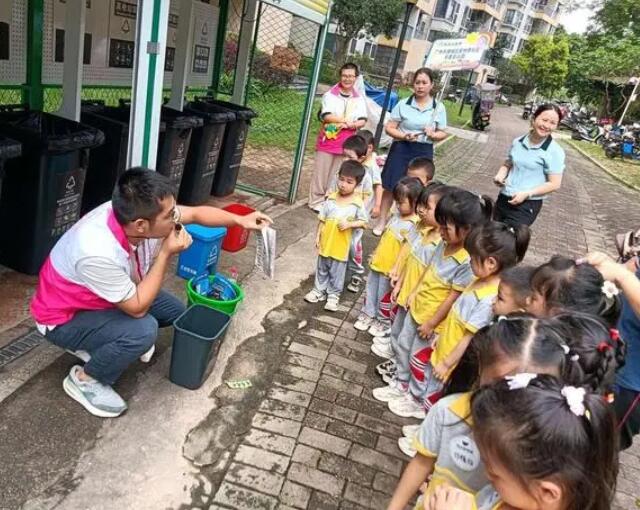 活動中,垃圾分類宣講員向新世界社區天星幼兒園師生發放了垃圾分類指導手冊,進行面對面社區宣講,幫助他們更好地掌握分類技巧和垃圾分類知識。孩子們認真學習垃圾分類知識,并親身體驗小小環衛工角色,在社區開展環境衛生清潔行動。