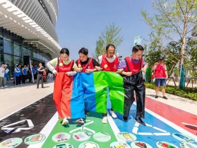 “5、4、3、2、1……”隨著大屏幕倒計時結束,分類我最“酷”、精準投放最省心、同心傳遞、垃圾分類是新時尚等多個集趣味性、運動性于一身的比賽項目輪番上演,環保及垃圾分類知識巧妙融入其中。寓教于樂中,20支隊伍紛紛手持任務卡依次出發,奔向各個關卡,接受挑戰。