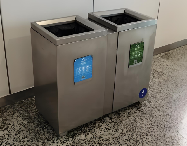 1.雙桶分區:通過明確標注“可回收物”與“其他垃圾”,引導乘客分類投放,助力城市垃圾分類政策的落地。部分定制方案還可增加“有害垃圾”獨立分隔倉。