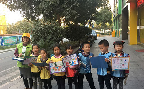 繪海報、走社區 杭州伢兒們挨家挨戶宣傳環保理念