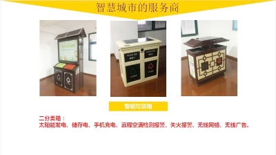 ????這個智能垃圾桶非常節(jié)能環(huán)保,它的頂部可以利用太陽能蓄電,一旦有人靠近它,它的投放口會自動打開,方便投放垃圾。除了標(biāo)識清楚,自動感應(yīng),這種智能化垃圾桶還有另一大功能,就是自動報警,垃圾桶被投滿之后,就會自動向后臺發(fā)出“漫溢報警”,并且準(zhǔn)確定位到垃圾桶的具體位置。