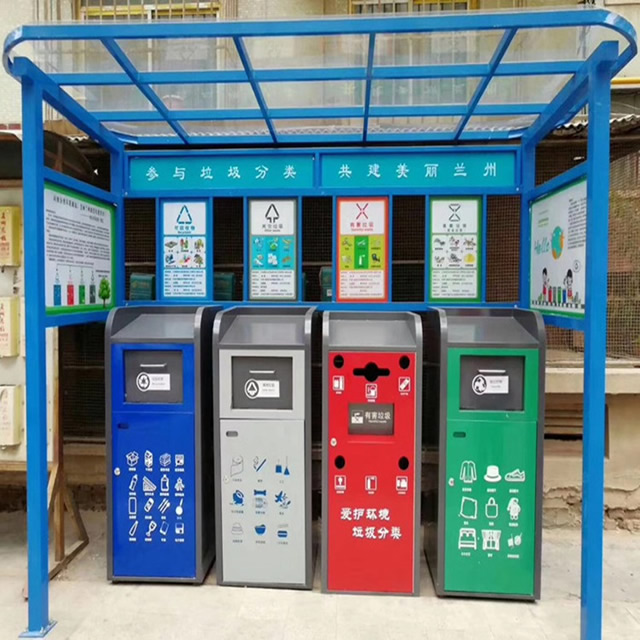 目前,城中村烤漆組合式鋼制垃圾亭是城市生活垃圾處置的主流趨勢,也是現代城市文明進步的標志之一,有利于提升垃圾清運效率,便于再生資源的回收利用,減少環境污染,緩解環衛工人常規保潔的壓力。垃圾分類亭,分為地基基礎設施、公益宣傳欄、立柱、頂棚等,亭內設置可回收、有害垃圾、廚房垃圾和其他垃圾等垃圾桶,垃圾桶及宣傳欄配有垃圾分類的宣傳標語,廣大群眾可以根據垃圾桶的提示標語,將廢棄的生活垃圾投放到對應的垃圾桶中。