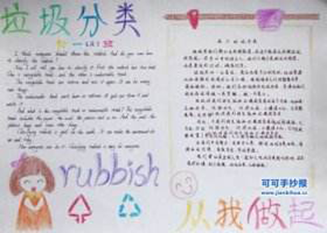 我們每個人一天雖只制造出一公斤左右的量,但是整個地區加起來,所產生的垃圾量的總和就相當大。因此,解決垃圾問題,首先就是以垃圾減量開始,然后做到分類回收,最后才是處理。我們平時所說的“垃圾減量”,實際上有兩層含義:1.減少個人垃圾的生產量:2.拓展垃圾用途,廢物利用,使垃圾不成為垃圾;垃圾分類精美手抄報有分類垃圾桶網收集整理。