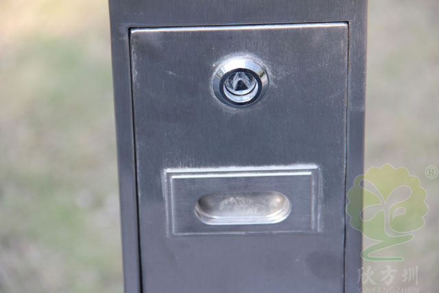 C633不銹鋼煙灰柱規格225*225*1185mm,呈長條傳,側面有三角鑰匙,可以打開側門,方便清理位于內套管的煙蒂煙灰,底座分兩種,一種是室內采用的,在底部裝有防滑墊,一種是戶外采用的,底部使用膨脹螺絲固定。