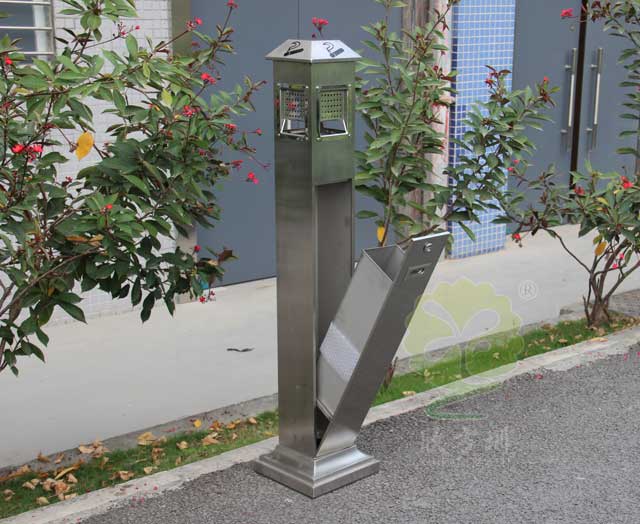 C-279C金屬煙灰柱采用優(yōu)質(zhì)不銹鋼剪切、組裝、焊接、絲印而成,它包括外套管、支座、內(nèi)套管、煙灰盒、底座。外套管的底端固定連接在支座上,外套管的側(cè)壁上設(shè)有煙蒂置入口,內(nèi)套管用于集中收納從外套管的煙蒂置入口投入的煙蒂,內(nèi)套管設(shè)在外套管的內(nèi)管腔中,內(nèi)內(nèi)套管的開口端朝上,煙蒂置入口與內(nèi)套管的開口相連通,以使得從煙蒂置入口投入的煙蒂可從內(nèi)套管的開口端落入到內(nèi)套管的內(nèi)管腔中;