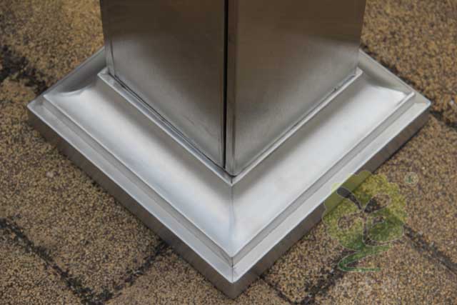 C-279C金屬煙灰柱規(guī)格250*250*1185mm,呈長(zhǎng)條傳,側(cè)面有三角鑰匙,可以打開側(cè)門,方便清理位于內(nèi)套管的煙蒂煙灰,底座分兩種,一種是室內(nèi)采用的,在底部裝有防滑墊,一種是戶外采用的,底部使用膨脹螺絲固定。