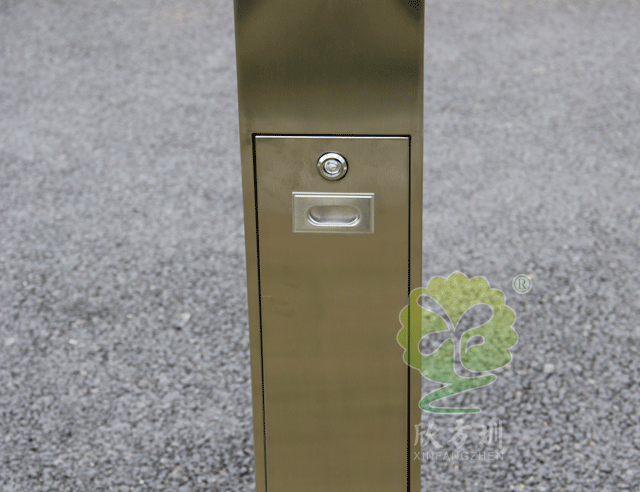 C619煙灰柱采購規格260*260*1120mm,呈長條傳,側面有三角鑰匙,可以打開側門,方便清理位于內套管的煙蒂煙灰,底座分兩種,一種是室內采用的,在底部裝有防滑墊,一種是戶外采用的,底部使用膨脹螺絲固定。
