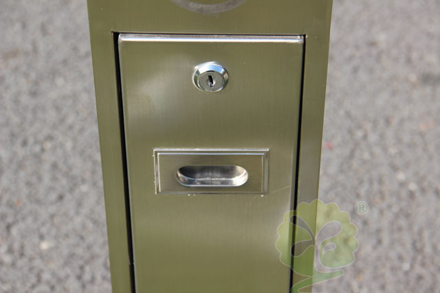 C618室外街道滅煙柱規(guī)格248*248*1175mm,呈長(zhǎng)條傳,側(cè)面有三角鑰匙,可以打開側(cè)門,方便清理位于內(nèi)套管的煙蒂煙灰,底座分兩種,一種是室內(nèi)采用的,在底部裝有防滑墊,一種是戶外采用的,底部使用膨脹螺絲。