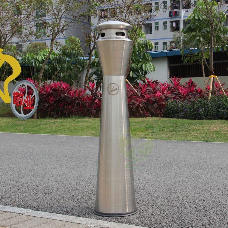 生產廠家推薦圓柱式滅煙柱采用優質不銹鋼剪切、組裝、焊接、絲印而成,它包括外套管、支座、內套管、煙灰盒、底座。外套管的底端固定連接在支座上,外套管的側壁上設有煙蒂置入口,內套管用于集中收納從外套管的煙蒂置入口投入的煙蒂,內套管設在外套管的內管腔中,內內套管的開口端朝上,煙蒂置入口與內套管的開口相連通,以使得從煙蒂置入口投入的煙蒂可從內套管的開口端落入到內套管的內管腔中;