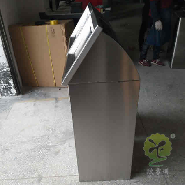 室內屋形搖蓋式不銹鋼分類垃圾桶生產過程: