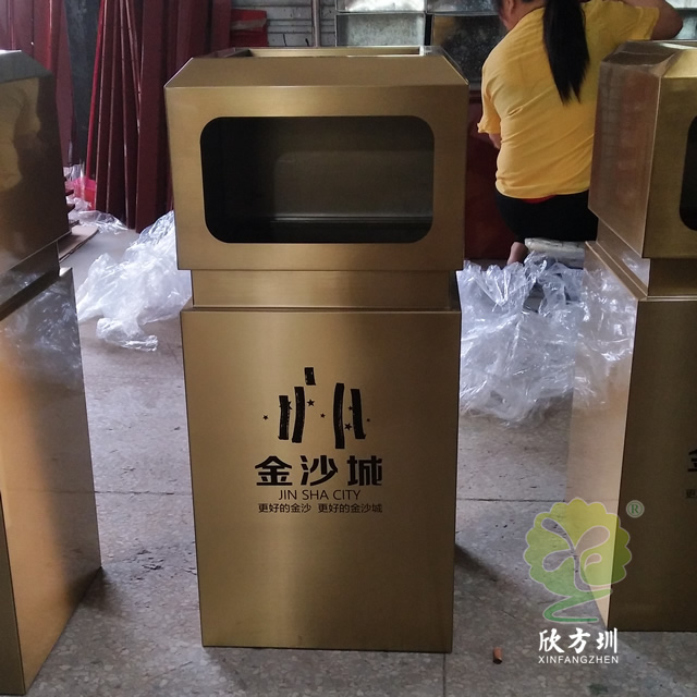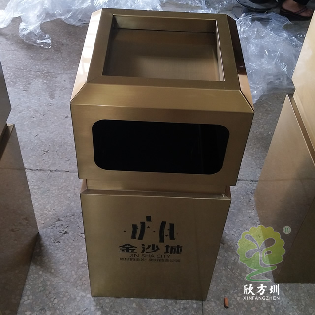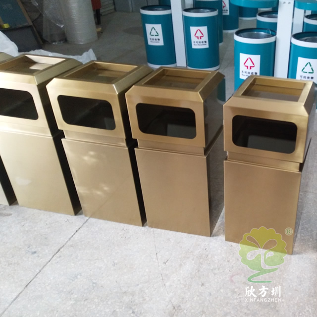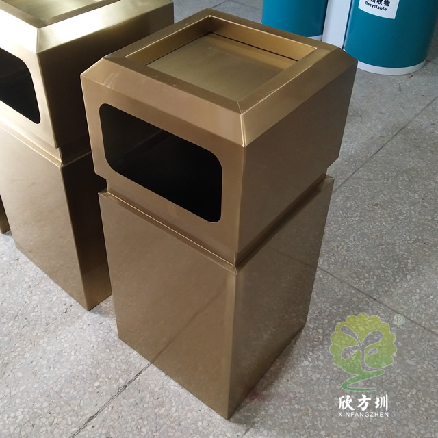 戶外電鍍古銅色方形不銹鋼垃圾桶產(chǎn)品詳情:
