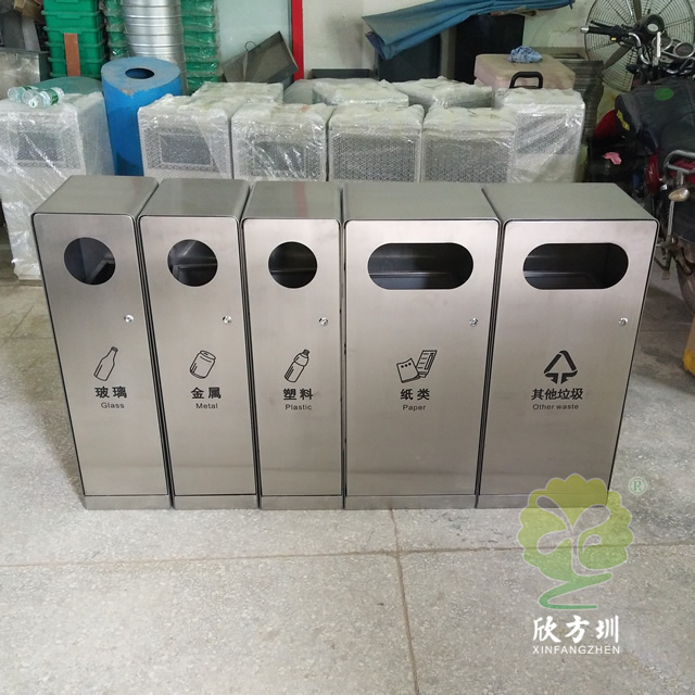 卓越品質(zhì)、精湛工藝‘、時(shí)尚外觀是XFZ-F343四加一組合式不銹鋼分類垃圾桶的優(yōu)點(diǎn),它以優(yōu)質(zhì)201#不銹鋼剪裁、組裝、焊接而成,卻渾然天成、嚴(yán)絲合縫、看不到一點(diǎn)縫隙和焊接痕跡。完美的折彎曲線非常考驗(yàn)制作工人的手藝,這種曲線不僅僅代表了美的藝術(shù),更是實(shí)際使用過(guò)程中積累的智慧與經(jīng)驗(yàn)結(jié)晶。它能很好的防止人群磕傷碰傷,保護(hù)附近人流的安全。加厚的桶身讓垃圾桶更加的堅(jiān)固耐用,看起來(lái)更高檔更有質(zhì)感,這種高檔優(yōu)質(zhì)的外形讓它非常適合擺放于辦公樓、酒店大堂、商場(chǎng)等奢華場(chǎng)所。桶底配有防滑墊,無(wú)需使用螺絲就能起著很好的固定作用,還能防止地面刮花,專門為室內(nèi)場(chǎng)所設(shè)計(jì)。