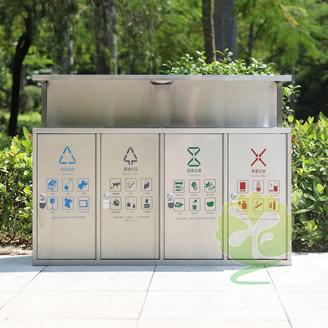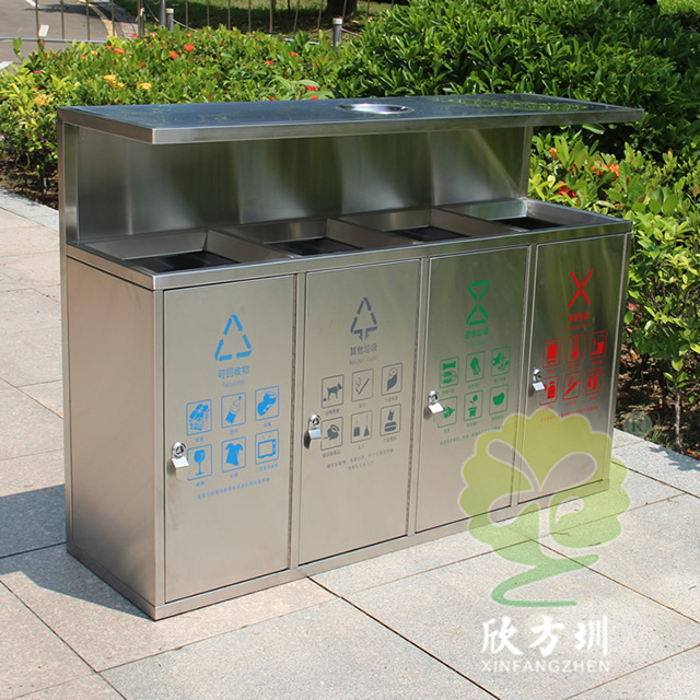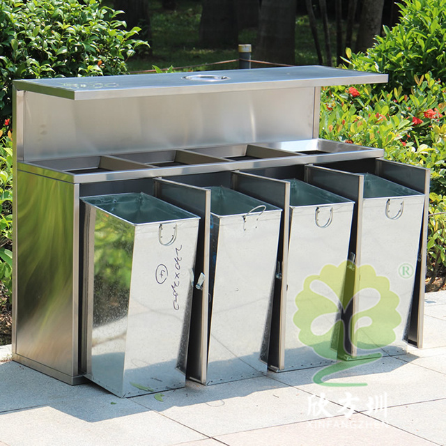 戶外市政街道四連體不銹鋼垃圾箱是欣方圳設計生產的一款經典熱銷垃圾桶,這款垃圾桶雖然使用不喜歡制作而成,但是外形采用了方形單筒,使其看起來有一股自然大方氣質,特別適合各種歷史景區(qū)、戶外公園、別墅小區(qū)、學校廣場等場景使用。這款垃圾桶外表經過防腐工藝處理,防水防腐蝕、經久耐用、工藝精湛、物美價廉。如果你對這款垃圾桶感興趣,請直接聯系我們報價。