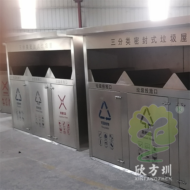 戶外密閉式三連體不銹鋼分類垃圾桶