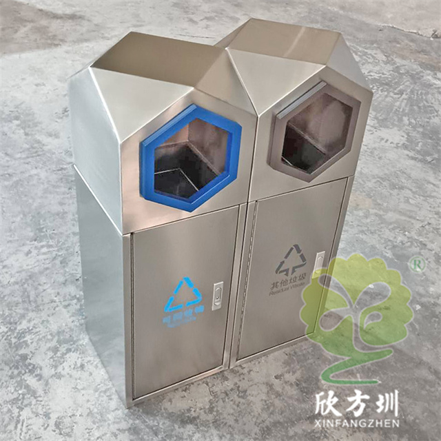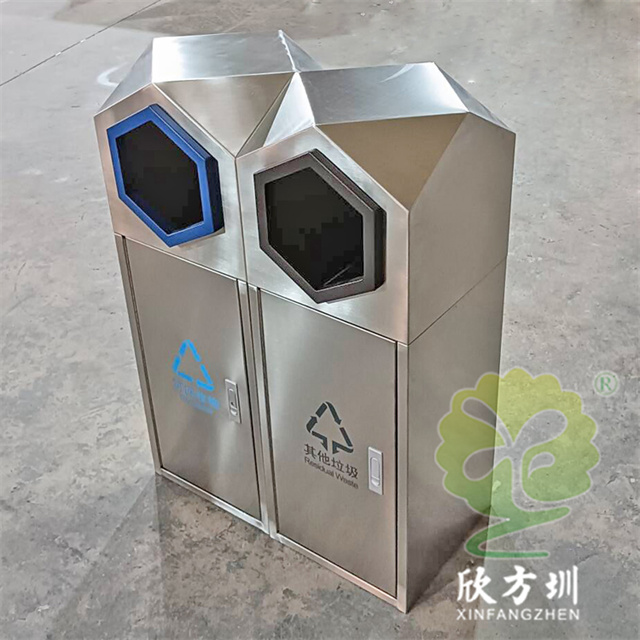 戶外公園組合式菱形不銹鋼分類垃圾桶產品詳情: |