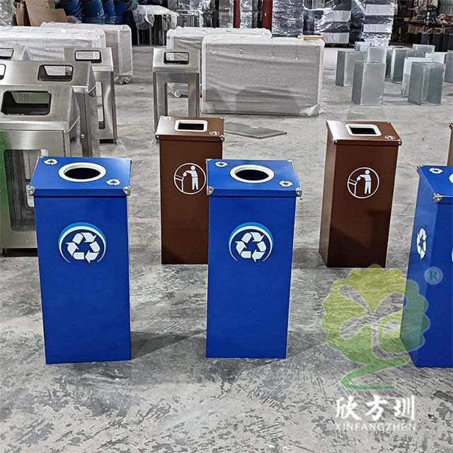 廣東烤漆三色不銹鋼分類(lèi)垃圾桶投放點(diǎn)可以采用鍍鋅板、201/304不銹鋼制造,方形組合式立式直投口設(shè)計(jì),噴粉烤漆綠色、藍(lán)色和咖啡色,投口圓形、橢圓形、方形開(kāi)口,蓋子四角帶鉚釘裝飾,可以做固定支架,桶身正面和投口邊可以定制油墨絲網(wǎng)印刷中英文標(biāo)識(shí)和人頭標(biāo)。