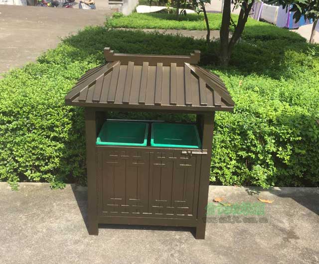 戶外景區(qū)古典鋼制分類垃圾桶規(guī)格:700*350*870mm。采用優(yōu)質(zhì)冷軋鋼材料經(jīng)激光切割剪鈑下料、折彎、沖壓、焊接、打磨、等工藝:表面經(jīng)過(guò)除油、噴砂防銹處理后,再進(jìn)行酸洗磷化處理;表面清理干燥后整體進(jìn)行靜電噴涂或烤漆處理,靜電噴涂是經(jīng)過(guò)流水線高溫固化爐固化后再出爐冷卻,加工后的塑粉附著力強(qiáng),不易剝落,這樣戶外防銹效果才會(huì)好。