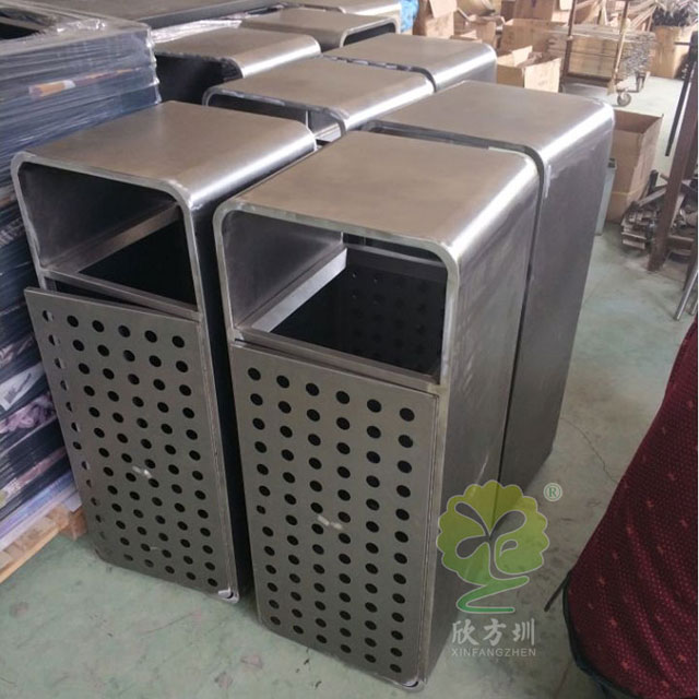 廠家批發鋼板沖孔垃圾桶采用優質冷軋鋼材料經激光切割剪鈑下料、折彎、沖壓、焊接、打磨、等工藝:表面經過除油、噴砂防銹處理后,再進行酸洗磷化處理;表面清理干燥后整體進行靜電噴涂或烤漆處理,靜電噴涂是經過流水線高溫固化爐固化后再出爐冷卻,加工后的塑粉附著力強,不易剝落,這樣戶外防銹效果才會好。