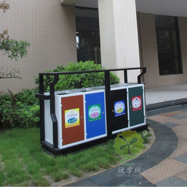 物業(yè)小區(qū)鋼板四分類垃圾箱采用優(yōu)質(zhì)冷軋鋼材料經(jīng)激光切割剪鈑下料、折彎、沖壓、焊接、打磨、等工藝:表面經(jīng)過除油、噴砂防銹處理后,再進(jìn)行酸洗磷化處理;表面清理干燥后整體進(jìn)行靜電噴涂或烤漆處理,靜電噴涂是經(jīng)過流水線高溫固化爐固化后再出爐冷卻,加工后的塑粉附著力強(qiáng),不易剝落,這樣戶外防銹效果才會好。