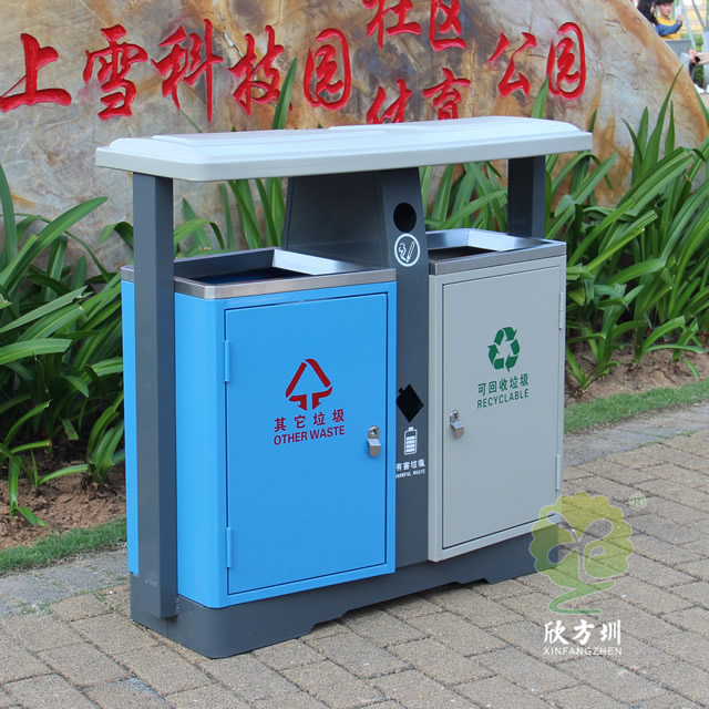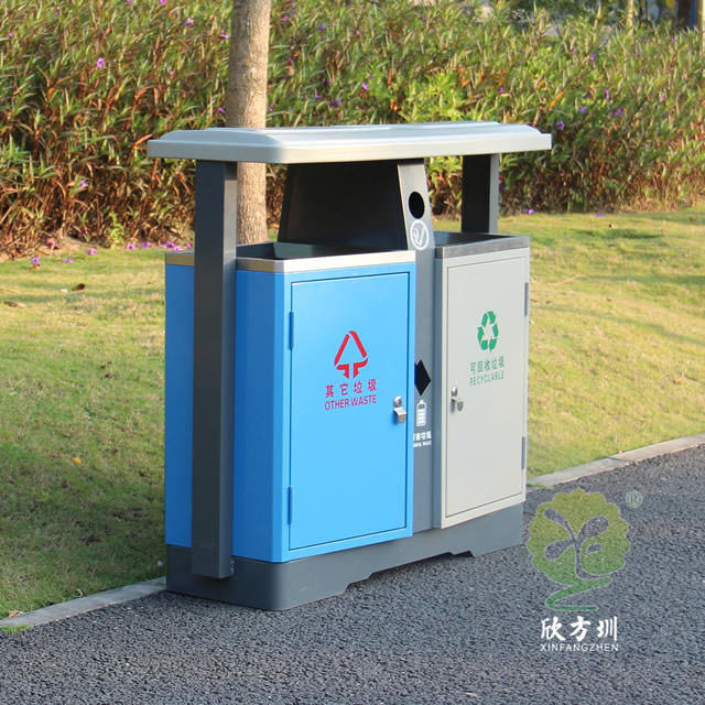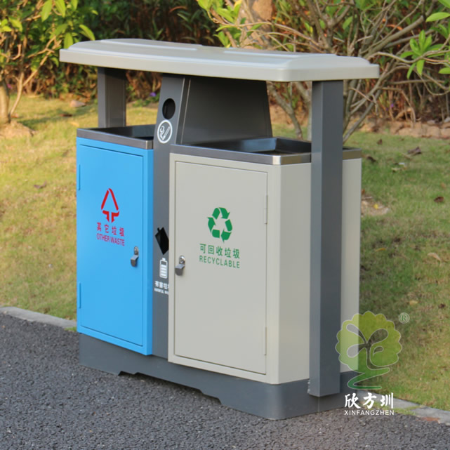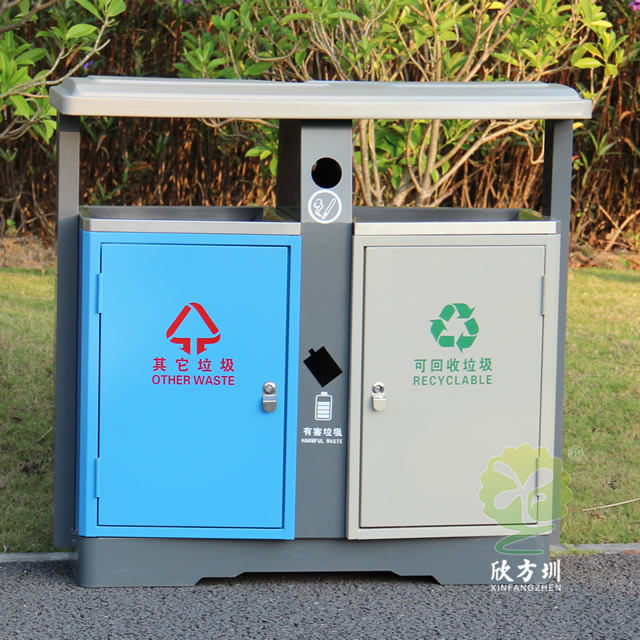 城市發(fā)展日新月異,人們對(duì)生活環(huán)境的衛(wèi)生要求也越來越高,沒有人可以容忍自己家園周圍看上去臟、亂、差。整治臟、亂、差,建設(shè)衛(wèi)生文明居住環(huán)境,是大部分城市的基本目標(biāo),居住環(huán)境的衛(wèi)生整治離不開垃圾桶的幫助,甚至垃圾桶本身就能成為城市文明的一道亮麗風(fēng)景線。沒有人愿意親近一個(gè)看上去布滿污漬,臟兮兮,充滿細(xì)菌的垃圾桶,而一個(gè)看上去干凈、衛(wèi)生、美觀的垃圾桶,除了人們更愿意往里面投垃圾外,本身就能起到裝飾美化的作用。欣方圳設(shè)計(jì)生產(chǎn)的室外街道兩分類鋼板垃圾箱就完全滿足這樣的作用。