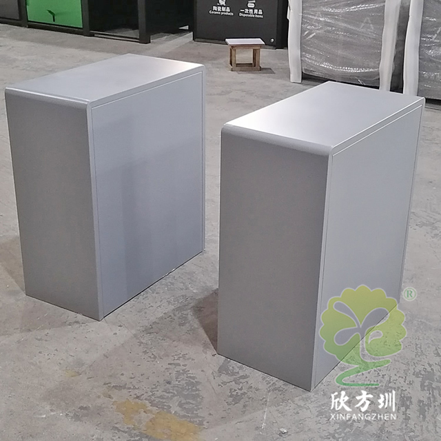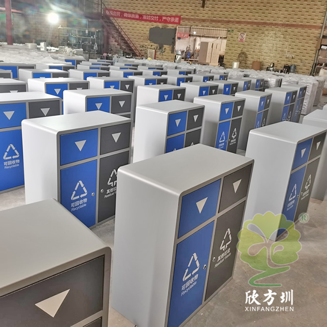 戶外搖蓋學校鋼板分類垃圾桶是采用優質的冷軋鋼板制作而成,有條件的客戶可以挑選201/304不銹鋼板做,方形搖晃蓋兩分類連體規劃,表面框架噴塑了米白色,可回收物門板和投口蓋子噴塑藍色,其他垃圾門板和搖晃蓋子噴塑了灰色,表面絲印最新國標分類標識,標識下方絲印了英文的翻譯,蓋子下方絲印三角形往下推的箭頭,欣方圳垃圾桶廠家支持定制,有需要可以聯絡咱們客服人員。
