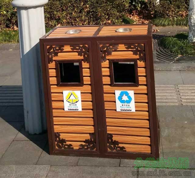 景區古典鋼木分類垃圾桶長900mm,寬400mm,高950mm,采用優質進口山樟木,經過除蟲,防蟻,防腐,烘干等專業處理后加工成型,經久耐用,防腐美觀。此款戶外鋼木分類垃圾桶是分類垃圾桶中的經典款式,無論是從外觀,性能還是環保方面來講,這個垃圾桶都十分優越,尤其適合擺放在花園,公園,小區,學校,街道,游樂園等場所,備受客戶青睞。