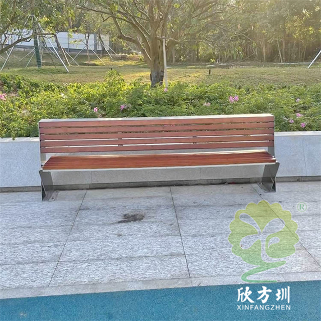 不銹鋼座椅公園椅:整體外觀和普通的公園椅座椅一樣,但是該公園椅座椅的椅條由防腐木換成了等長的不銹鋼鋼柱,帶有靠背設計,整體框架采用一體化焊接技術,美觀又耐用。